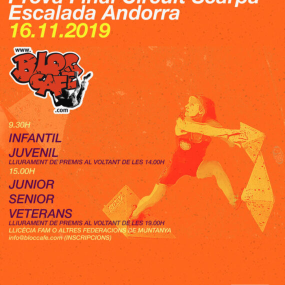 Andorra la Vella, 18 de novembre. El passat 16 de novembre es va celebrar la 3a i darrera Prova del Circuit Scarpa d’escalada a Andorra, que va tenir lloc al Bloc Cafè.